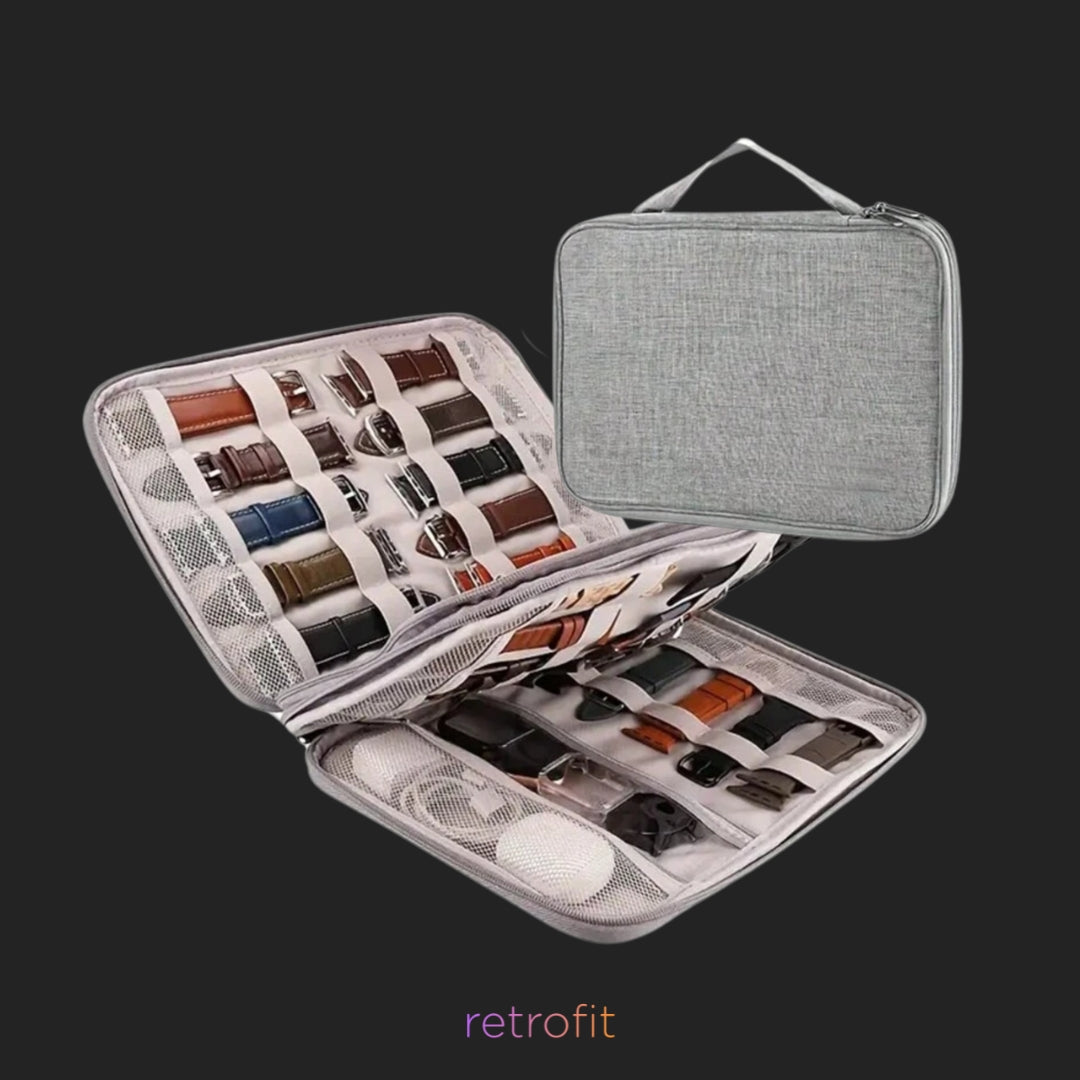 These watch band storage bags are perfect for those of you who have a variety of watch bands. The watch bands are kept in place with an elastic band. Chargers, cords and power banks can also be stored in these bags